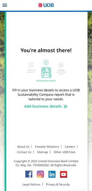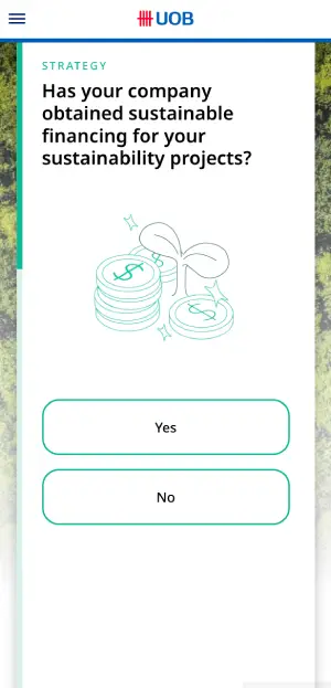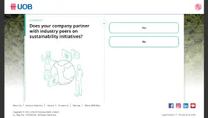 My second project at Aleph-Labs was working with the design team to create a questionnaire micro-site that enables UOB to collect information from their business banking clients and make recommendations as to how they can best adapt their organisation to a zero-carbon future.