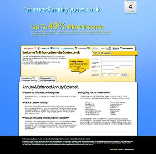 This website was designed for the same client as Enhanced Annuities Quotes. The specification was much the same, a simple single-page website with the focus and emphasis on conversion. The site provides the basic information required but is geared towards calling the user to action in order to harvest contact information.