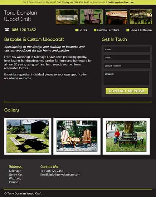 I was approached by a former colleague who required a website for an acquaintance. Tony Donelan Woodcraft are a company that specialises in hand-crafted garden furniture operating from their premises in Belfast, Ireland.