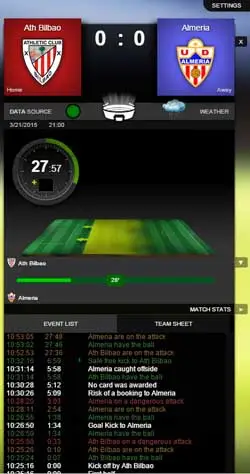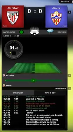 Football Services also enabled realtime data collection from matches via the Football Trader App, utilised by SIS staff attending the games who captured events in realtime using our android tablet based data collection tool.