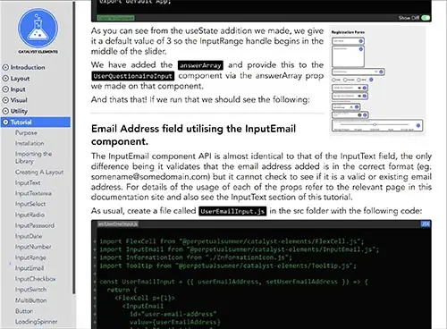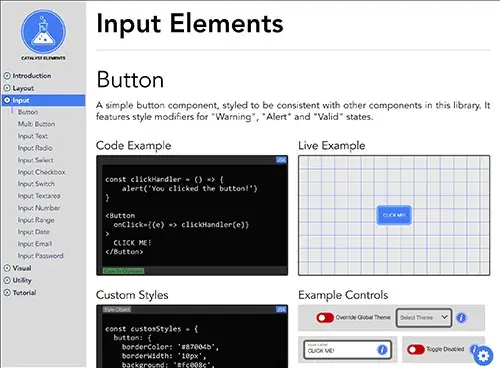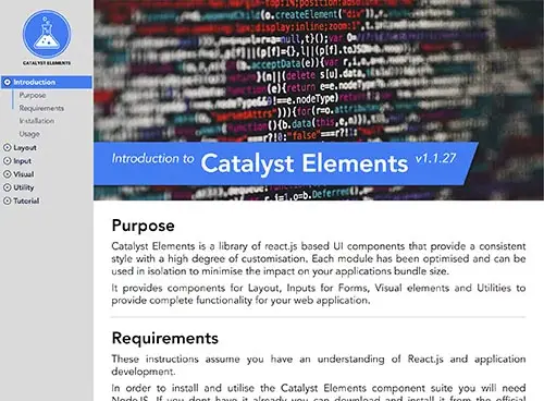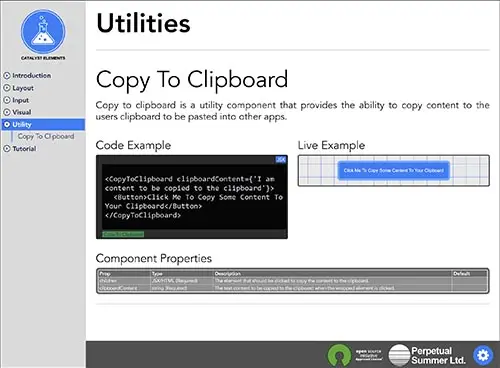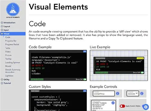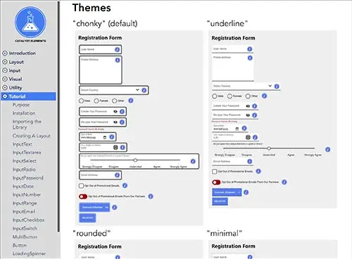 For more information, interactive documentation and tutorials on usage, visit the Catalyst Elements website here.