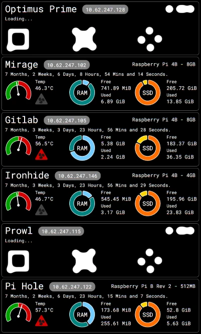Tracking dashboard to monitor the status of my Raspberry Pi micro-computers.