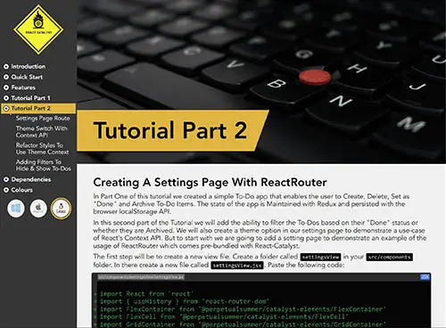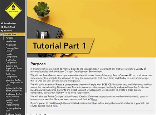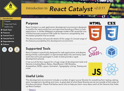 This website was also built using the React Catalyst Development Environment. This project is open-source and the codeis publicly available on bitbucket . The documentation site, complete with tutorials can be found here